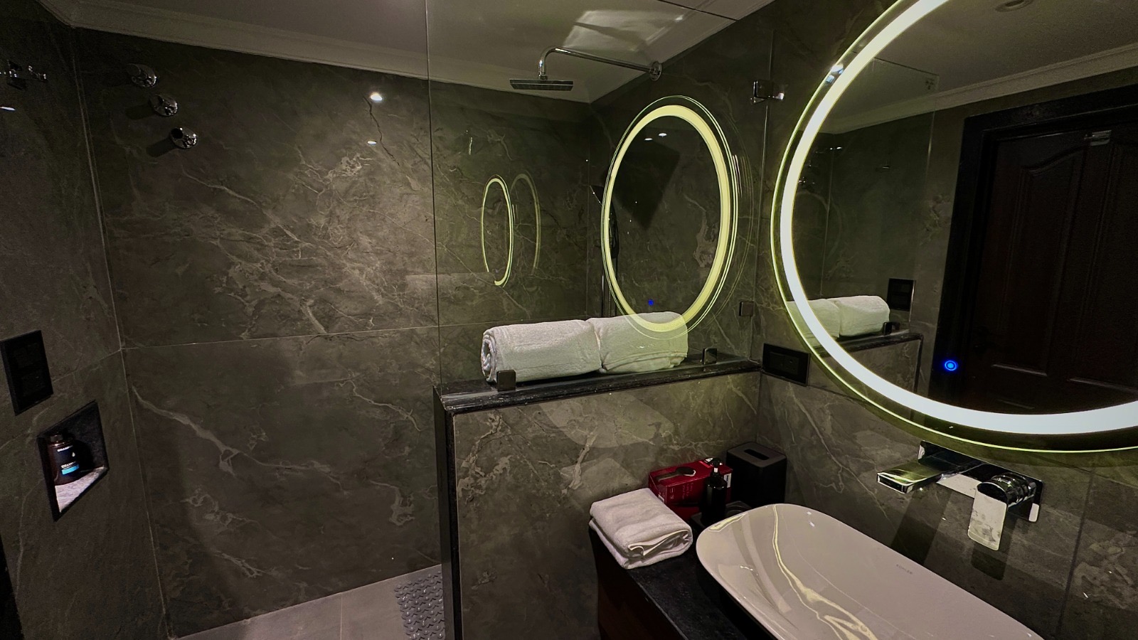 The suite features a spacious bedroom with a comfortable king-size bed, ambient lighting, and plush furnishings that invite you to relax. A cozy seating area provides the perfect space for quiet conversations or enjoying morning coffee together, while large windows or a private balcony bring in natural light and scenic views.